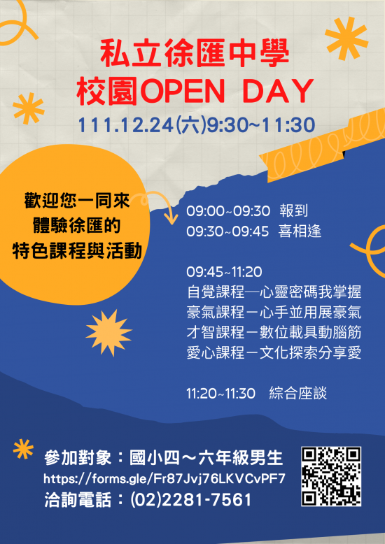 徐匯中學辦理「徐匯OPEN DAY」特色課程活動,宣傳簡介如附件。