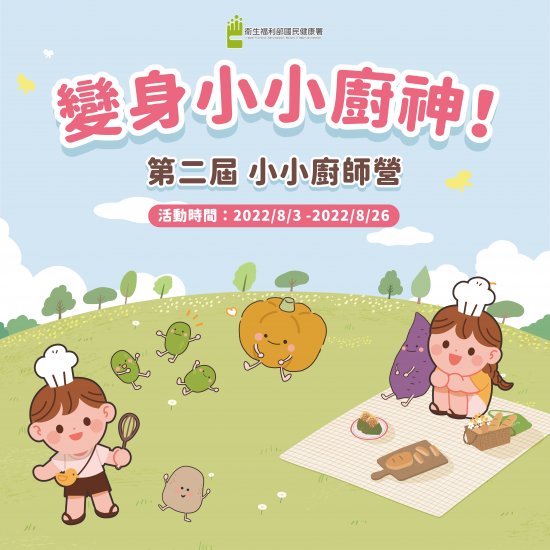 一、為推動均衡飲食,於111年8月3日至8月26日於「食在好健康」臉書粉絲專頁(https://www.facebook.com/eatinghealth.tw) 辦理線上「小小廚師營」活動,活動包括有趣的線上課程影片、料理實作、課後學習單及小小廚師隨堂考等,透過系列活動 可學習正確的均衡飲食觀念,還有機會抽中知名廚具、家電及禮券等獎品,邀請學童與家長踴躍參加。