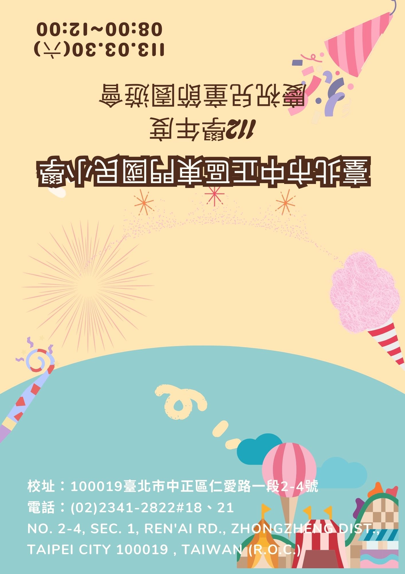 113.03.30歡迎蒞臨臺北市中正區東門國民小學112學年度慶祝兒童節園遊會